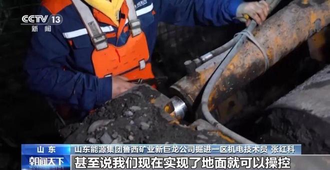 山东能源集团鲁西矿业新巨龙公司掘进一区机电技术员 张红科:我现在从事这行业今年是第19个年头了,像以前切割时,中间司机在里边切割,一割起迎头之后,基本就是啥也看不见,在切割过程中凭感觉去割。现在我们司机不用再下到里面了,甚至说我们现在实现了地面就可以操控。