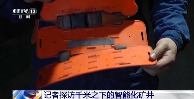 从这里再往前走,记者必须穿上防冲防护装备,因为这个作业面较深冲击风险较高。这种像铠甲一样的装备使用轻量化的高硬度材料制成,可以有效抵御突发情况,起到保护作用。