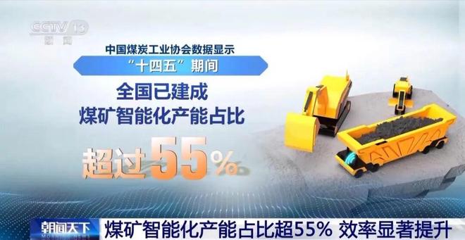 中国煤炭工业协会数据显示,“十四五”期间,煤矿智能化建设提质加速,无人驾驶、人工智能深入推进。全国已建成煤矿智能化产能占比超过55%;全国煤矿智能化采掘工作面已由2020年的494处增加到1930处。智能化建设推动超1.6万个固定岗位实现无人值守,重点煤矿智能化综采工作面单班作业人员可减少6人以上。